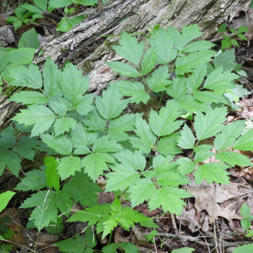 Black Cohosh (Actaea racemosa) is a seasonal plant with large panicles of white flowers from early to mid-summer. They prefer mesic soil in part sun to shade where they can grow up to 7 feet tall. They are a good choice for shaded slopes. Companion plants include Cinnamon Fern (Osmunda cinnamomea) and Wild Geranium (Geranium maculatum).