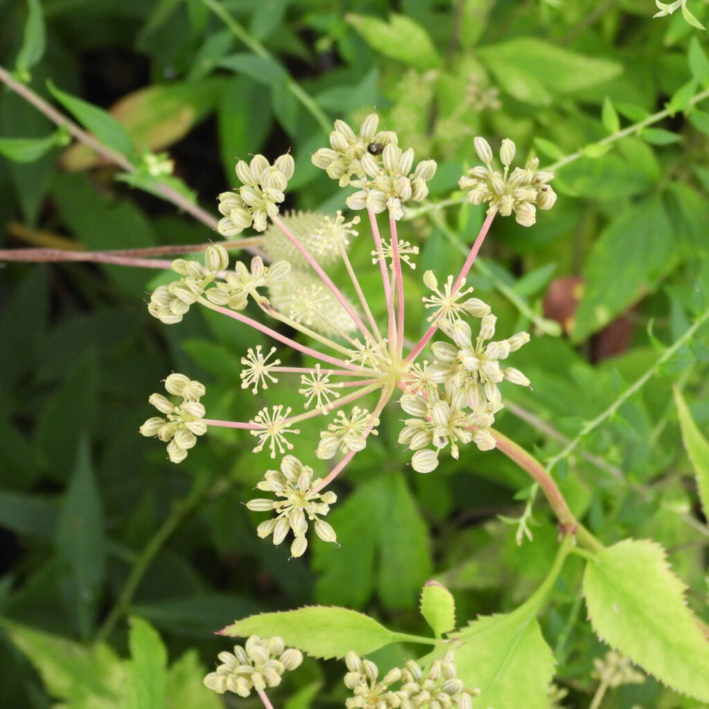 Golden Alexanders (Zizia aurea) is a seasonal plant with yellow flowers late spring into early summer. They prefer moist to mesic soil in sun to part sun where they grow up to 3 feet tall. They are a good choice for banks and slopes. Companion plants include Purple Coneflower (Echinacea purpurea) and Little Bluestem (Schizachyrium scoparium).