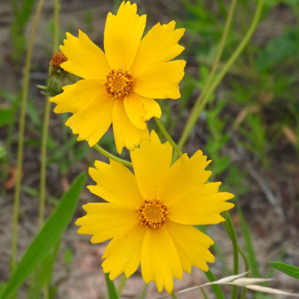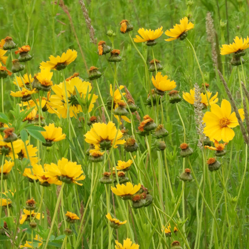 Lanceleaf Coreopsis (Coreopsis lanceolata) is a seasonal plant with yellow blooms from late spring through mid-summer. They prefer mesic to dry soil in sun or part sun where they can grow up to 3 feet tall. They are a good choice for slopes and banks. Companion plants include Purple Poppy Mallow (Callirhoe involucrata) and Anise Hyssop (Agastache foeniculum).