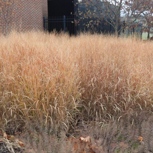‘Shenandoah’ Switch Grass (Panicum virgatum ‘Shenandoah’) is a structural plant with grassy foliage and showy, airy panicles with seed from summer through winter. They prefer mesic to wet soil in sun to part sun where they grow up to 4 feet tall. They are a good choice for the slopes and basin of rain gardens. Companion plants include Orange Coneflower (Rudbeckia fulgida) and Purple Coneflower (Echinacea purpurea).
