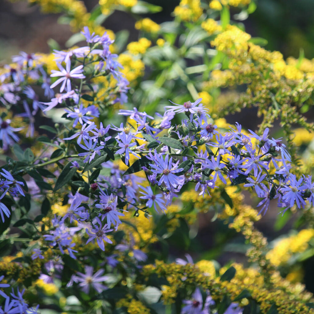 Shorts Aster (Symphyotrichum shortii) is a seasonal plant with lavender flowers late summer through fall. They prefer dry to mesic soil in part sun to shade where they grow up to 3 feet tall. They are a good choice for shaded banks and slopes. Companion plants include Pennsylvania Sedge (Carex pensylvanica) and Wild Ginger (Asarum canadense).